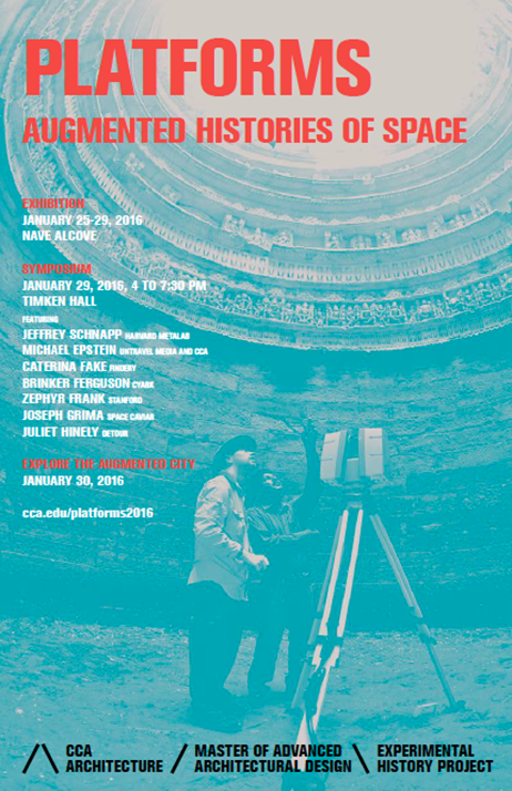 The event has three parts: a week-long exhibition, a Friday symposium, and a Saturday event that invites participants to explore San Francisco through the tools of augmented history.